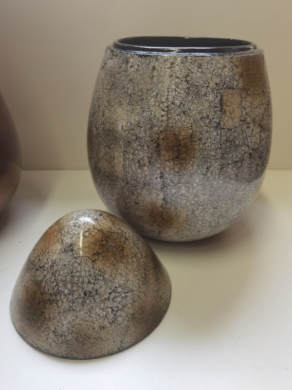 Pot met deksel - Urn - Ei model - Metaal - 34cm hoog - Ø23cm - Marmer.