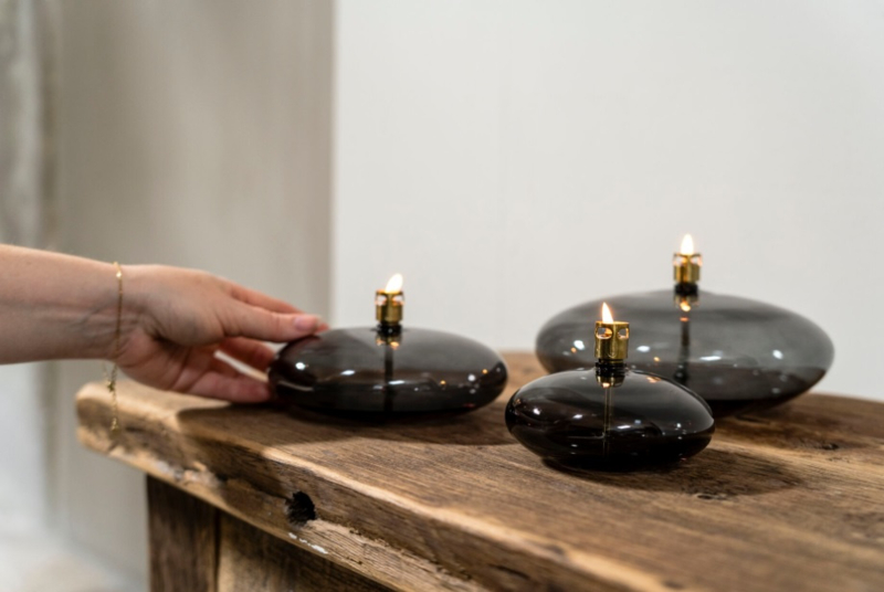 Olielamp - 3 set - incl trechter - Disc Model- Peri Living - Ø14x6cm. - Ø10x5cm. - Ø18x9cm. - Messing