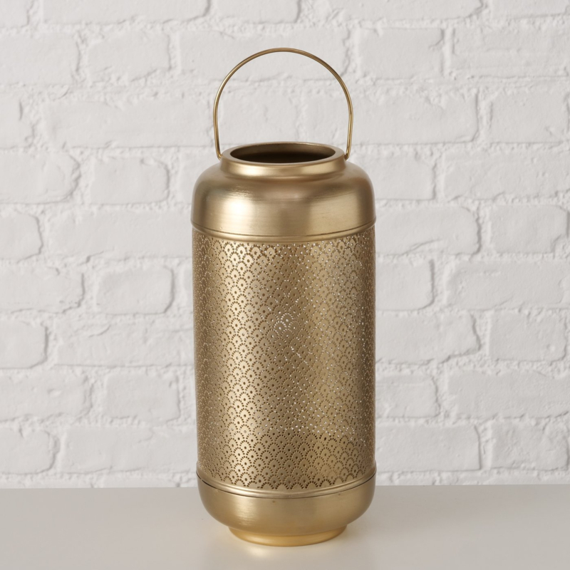 Artikelnummer: 4066076677382 OverzichtLantaarn van ijzer met een goudkleurige, matte afwerking.