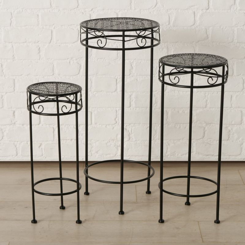 Bijzet tafel - 3 set - Planten tafel - Hoogte: 70-60-50 cm - Zwart - Ø 30-25-20cm. - Metaal