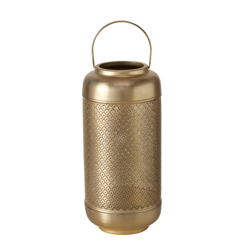 Windlicht - Metaal - 31cm - Ø 15cm - Goud - Aziatische/Oosterse designelementen - HandgemaaktLantaarn van ijzer met een goudkleurige, matte afwerking.