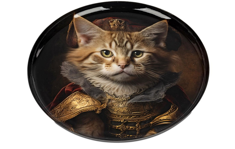 Schaal - Bord - Kat - Decoratie - Ø 28cm - Glans - Metaal - Hoogte 2 cm - Beschilderd.Decoratie schaal - Bord mooie beschilderd.