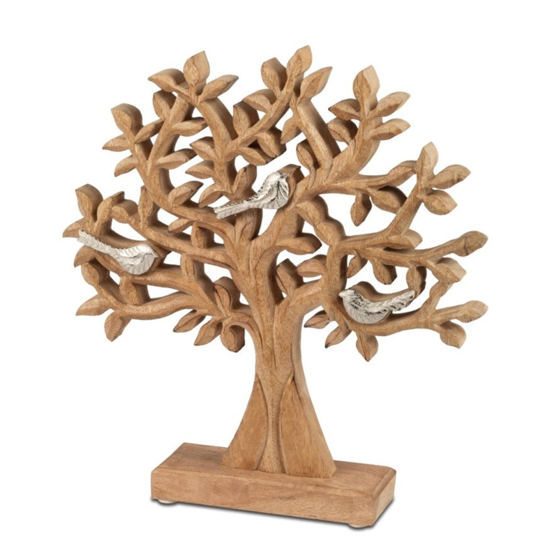 Levensboom - met Vogels - Op Mango Voet - 27x25cm - Zilver - Mango - Aluminium - RawDeze levensboom staat prachtig op vensterbank of open kast.