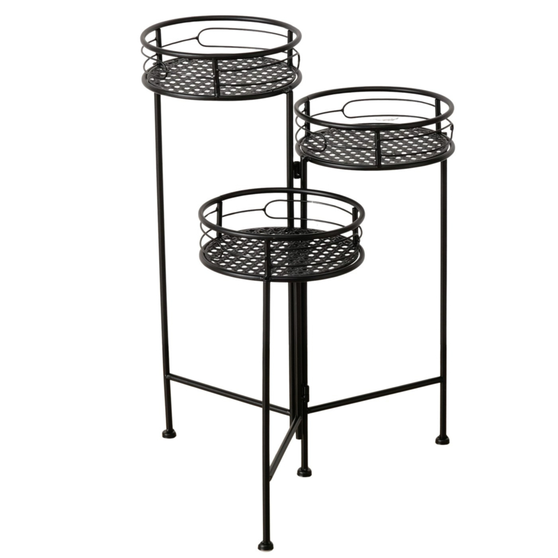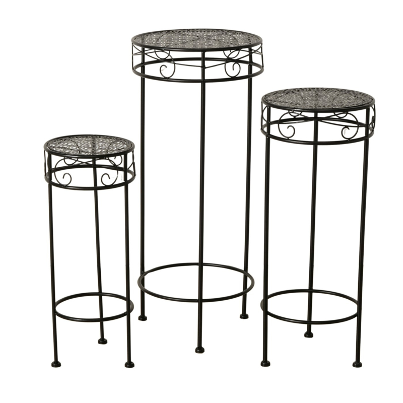 Bijzet tafel - 3 set - Planten tafel - Hoogte: 70-60-50 cm - Zwart - Ø 30-25-20cm. - MetaalDeze 3 set is gemaakt van smeedijzer en de kleur is zwart.